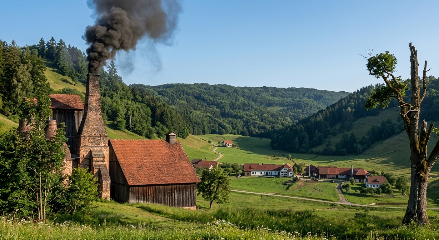 AI rendering of a drawing of Union Furnace by Henry Howe in 1846.