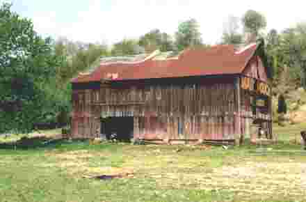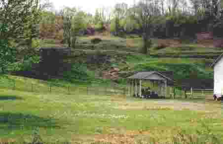 The large barn for Mount Vernon Furnace where horses, mules, and oxen were stabled has almost completely fallen down. Just the lower half of one end remains standing. Note: This is probably the last picture taken of the last half of the barn before it finally fell in 1998. It is too bad that someone didn't save the barn as it was the barn that John Campbell used as a stop on his Underground Railroad (used to secretly move slaves to freedom). A historic site.